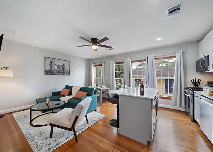 The 56 m² Homey Apt Nr Med Center Fire Pit Bbq Wifi Games Houston is located 17 minutes' walk from the multi-purpose Health and Physical Education Arena and around 6 km from the Downtown Aquarium.